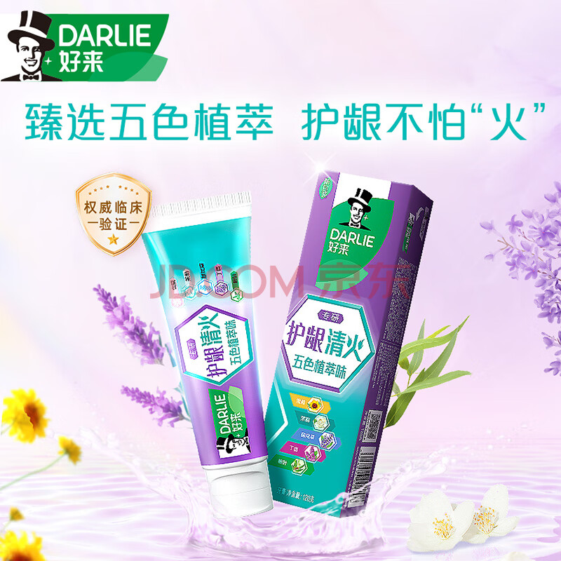 商品相册:好来(DARLIE)(原黑人)专研护龈清火·五色植萃牙膏120g改善牙龈红肿新旧包装第
