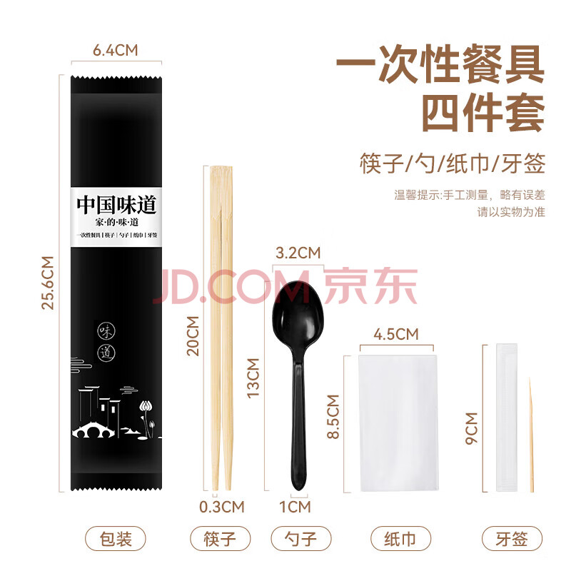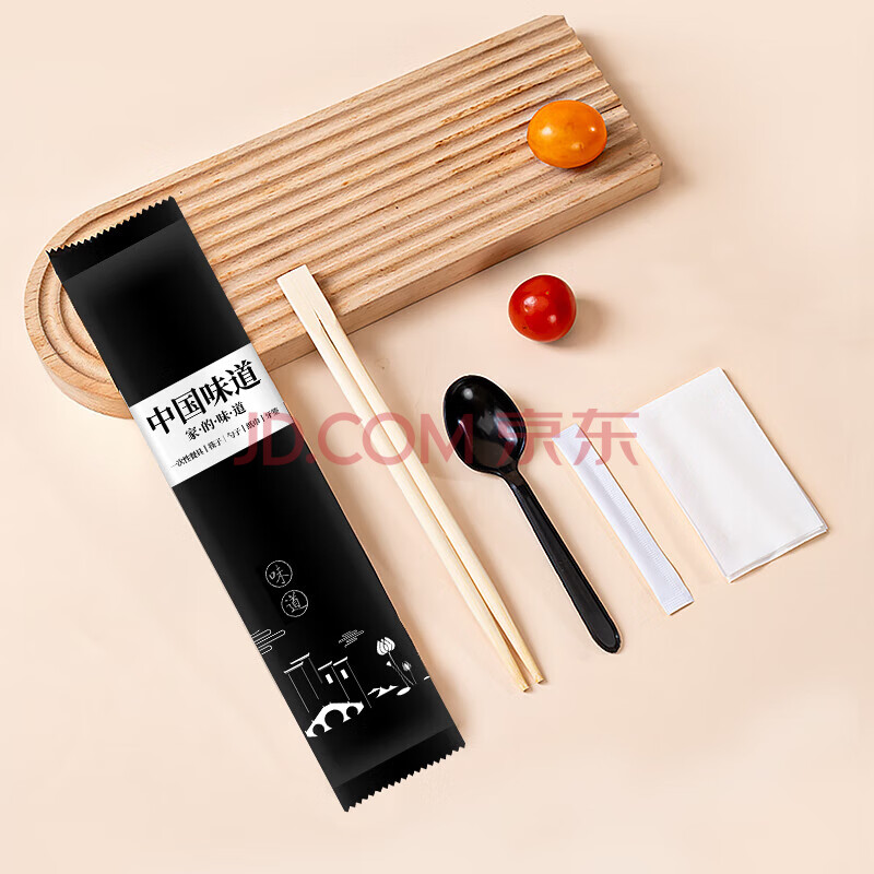 商品相册:特美居一次性筷子独立包装四件套装50套 外卖打包筷勺纸巾牙签方便餐具第