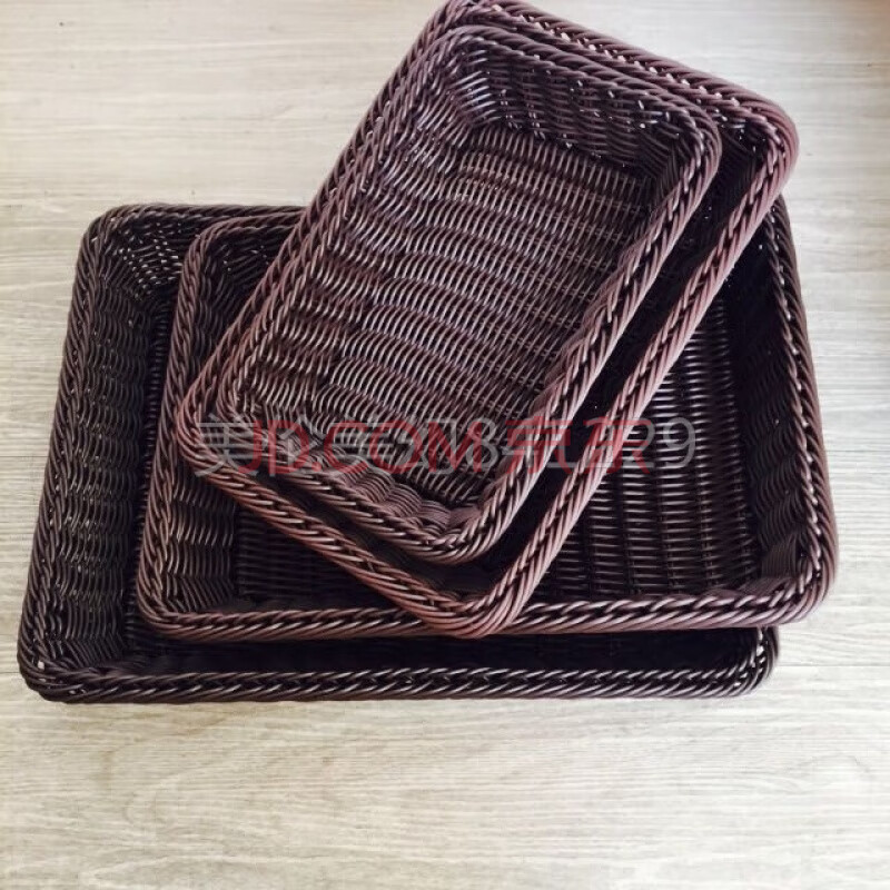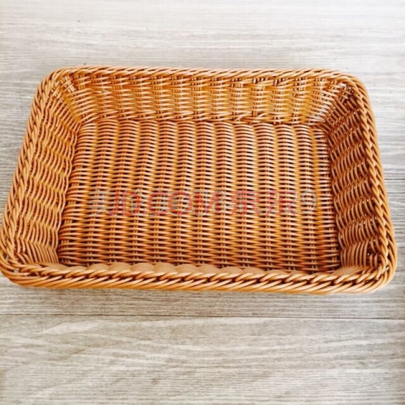 商品相册:铁骥仿藤编织篮零食展示箱市陈列水果篮子藤编面包篮收纳箱340*30*8浅咖第