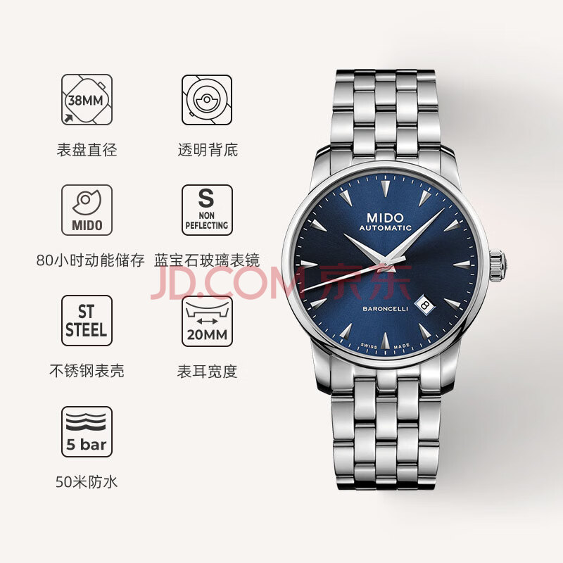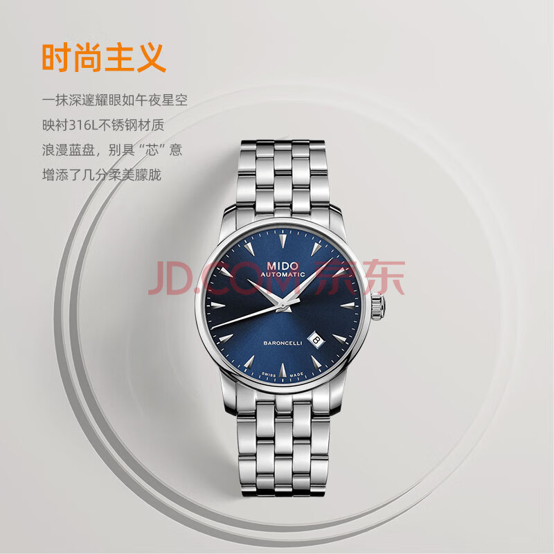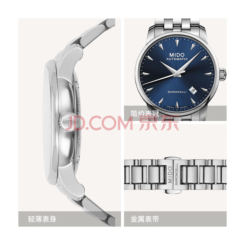 商品相册:美度(MIDO)瑞士手表 贝伦赛丽系列“午夜蓝”商务休闲 自动机械钢带男表第