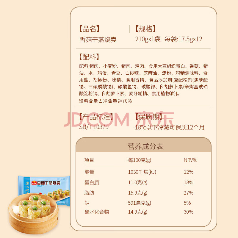 商品相册:广州酒家香菇干蒸烧麦210g 12个 早餐开学季广式早茶点心烧卖速冻面点第