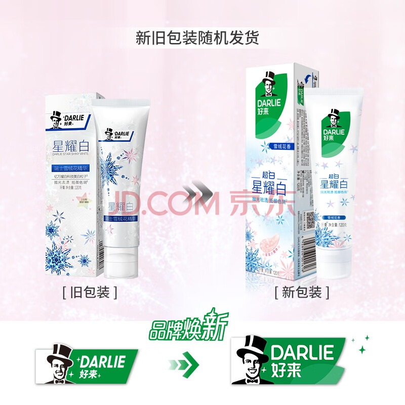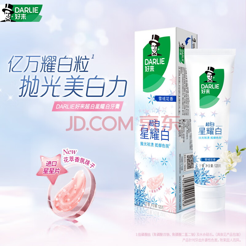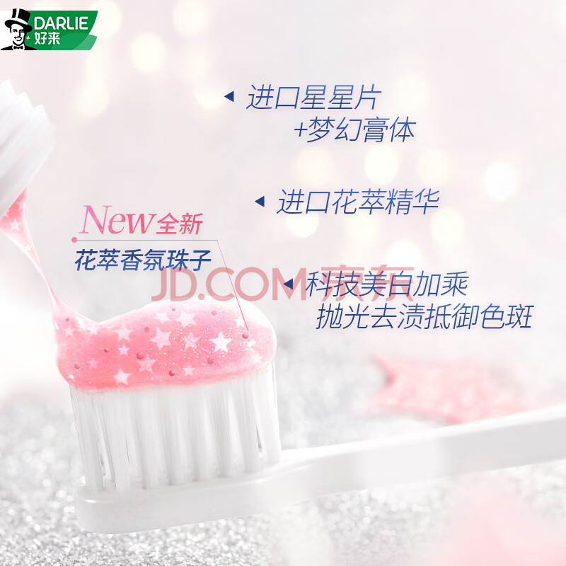 商品相册:好来(DARLIE)(原黑人)星耀白牙膏美白去黄去牙渍含氟2支240g第