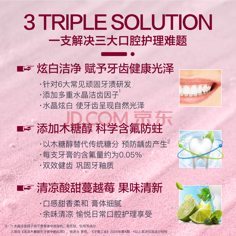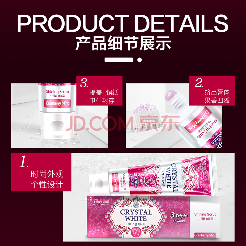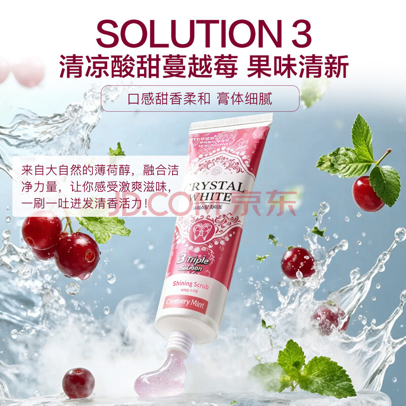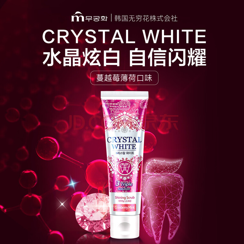 商品相册:無瑾花 韩国进口 炫白水晶牙膏110g 蔓越莓薄荷味 亮齿护龈 去烟渍牙渍第