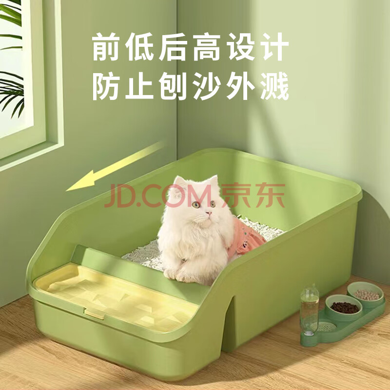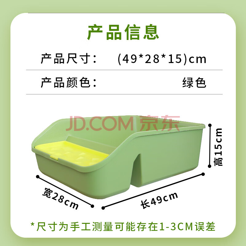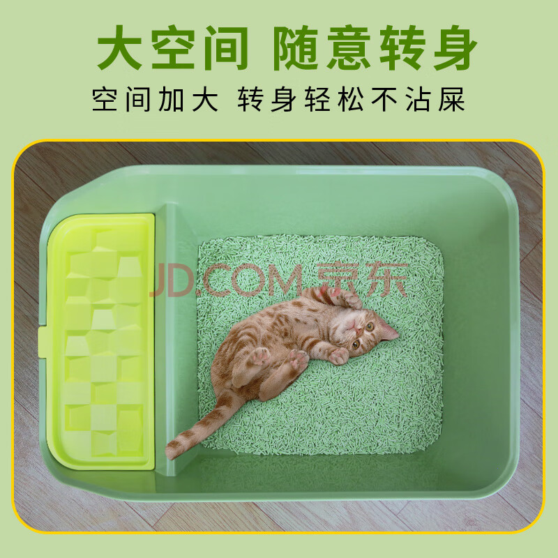 商品相册:宠乐乖(CHONGLEGUAI)猫砂盆半封闭式猫厕所防外溅猫沙盆幼猫带猫砂铲绿色中小号第