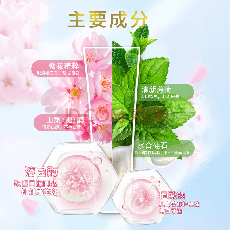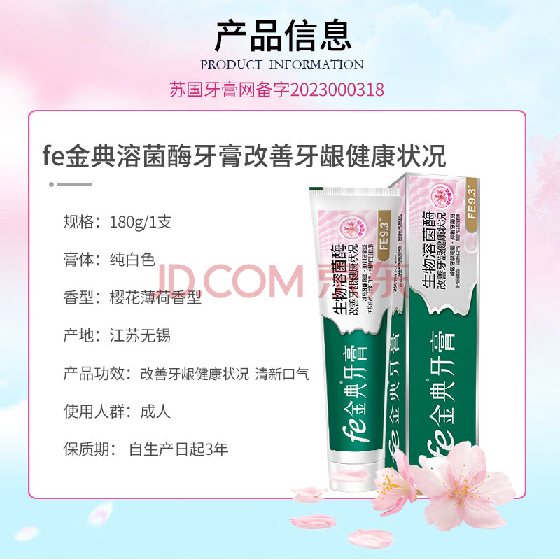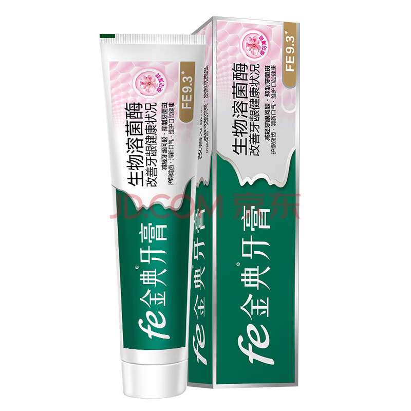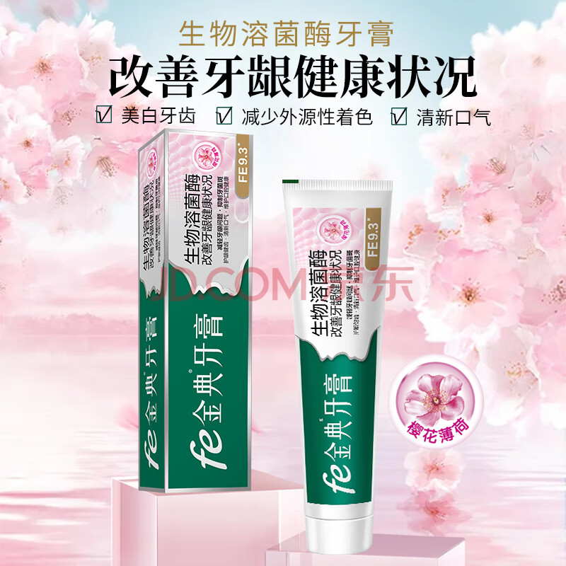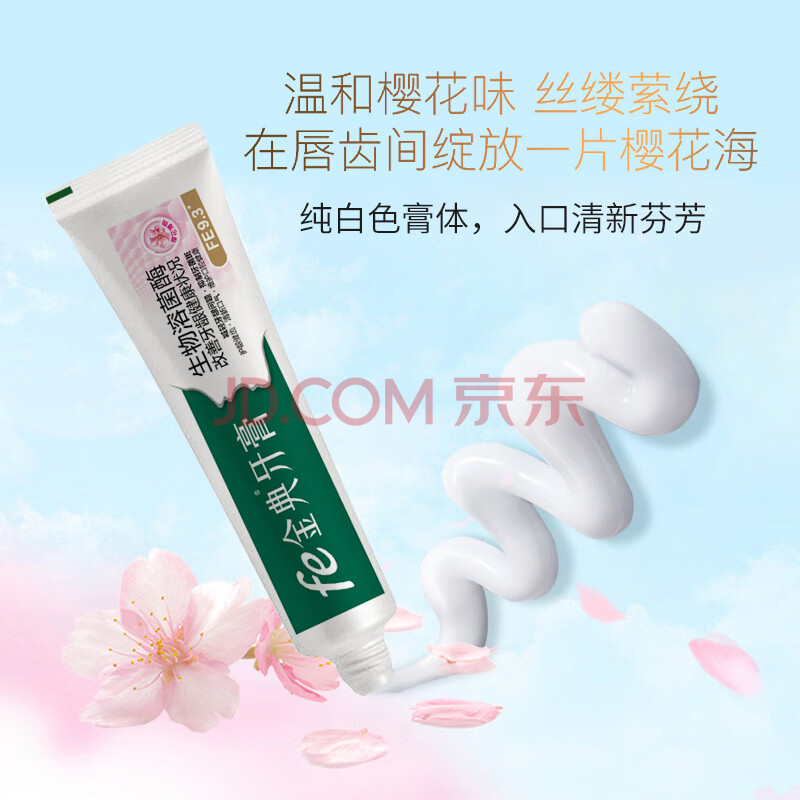 商品相册:fe金典牙膏洁白去渍去黄美白牙齿 樱花薄荷清新口气生物酶9.3牙膏180g第