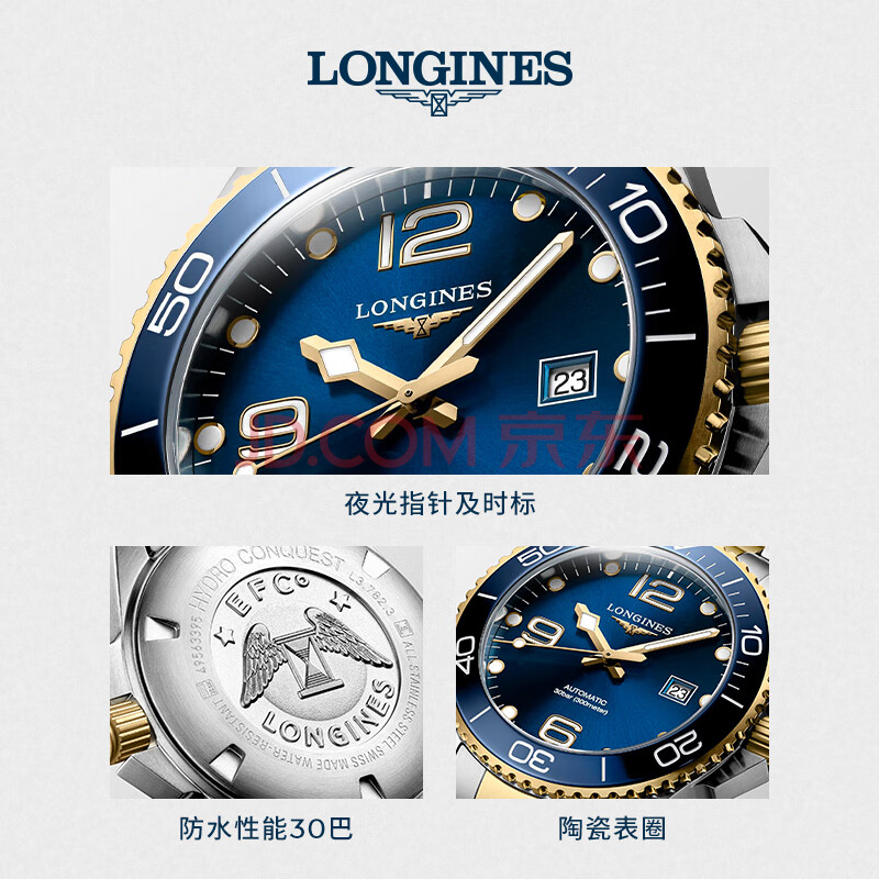 商品相册:浪琴(LONGINES)瑞士手表 康卡斯潜水系列 男士钢带机械表L37823967第
