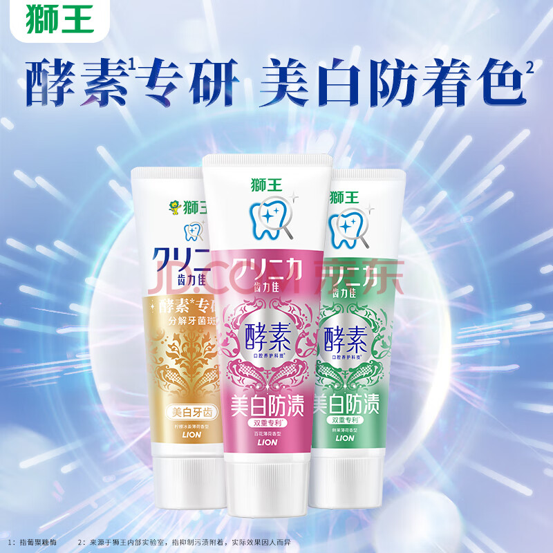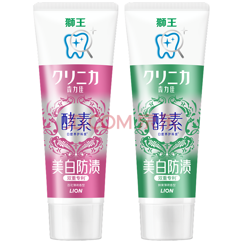 商品相册:狮王(lion)齿力佳进口酵素美白牙膏鲜果+百花 130g*2第