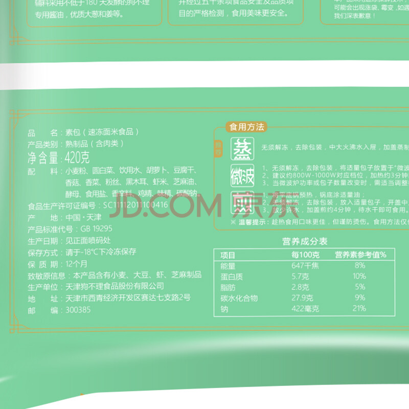 商品相册:狗不理手工素包 420g 12个 包子 含虾米 早餐选择第