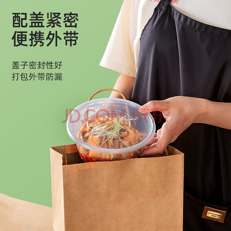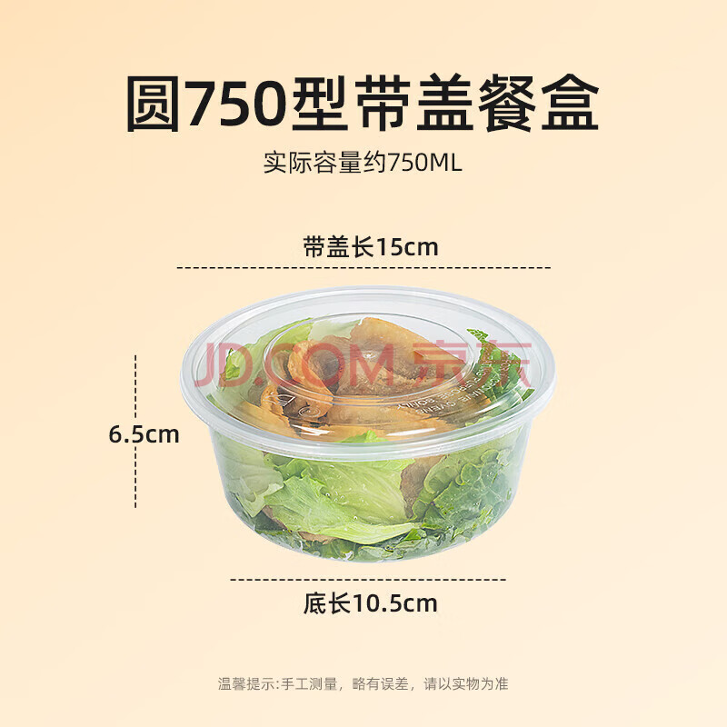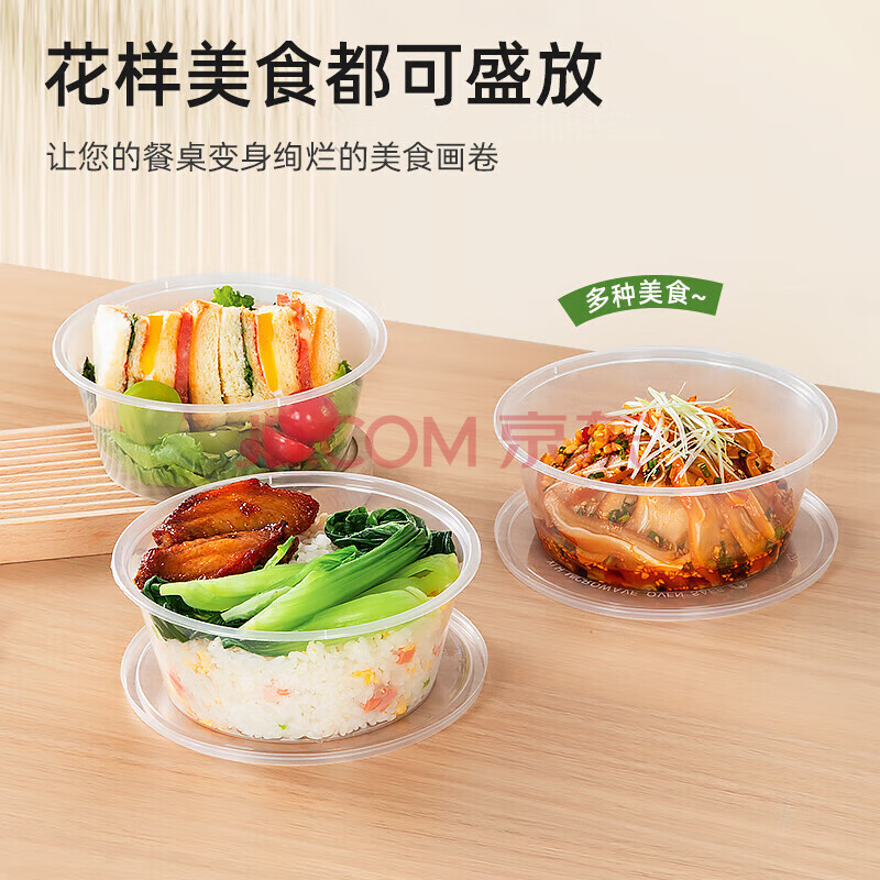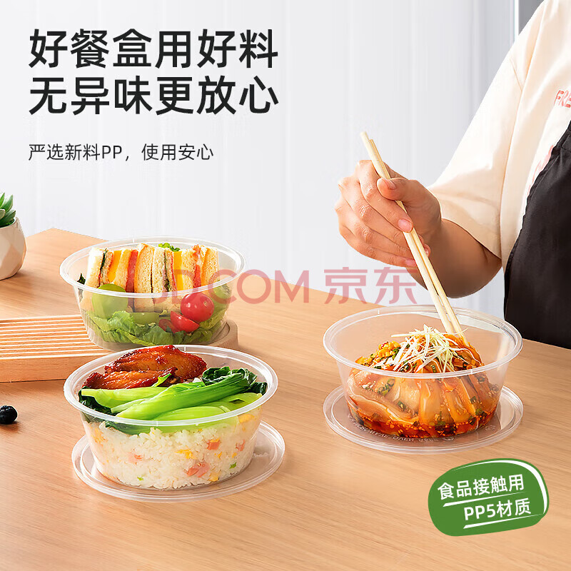 商品相册:特美居(temeiju)一次性饭盒圆形透明塑料快餐盒加厚带盖打包盒餐具300套装750型第