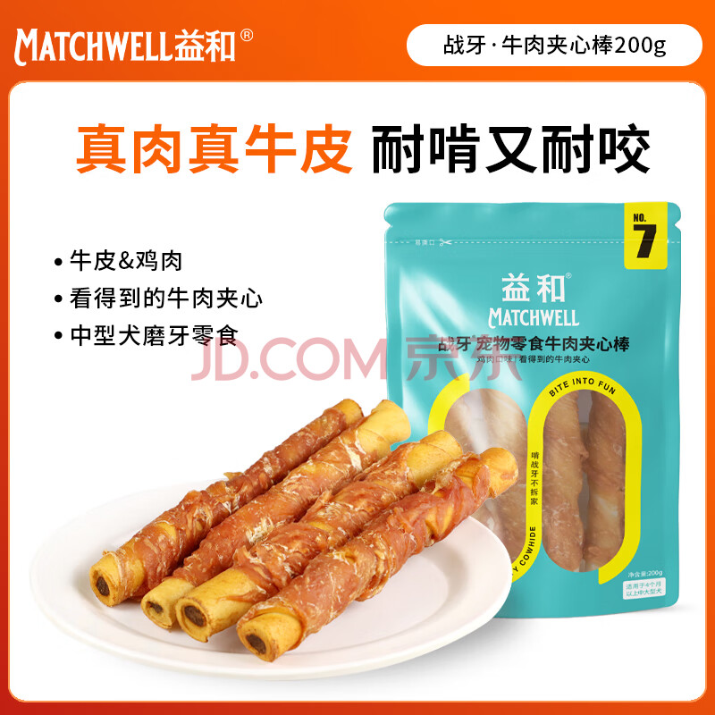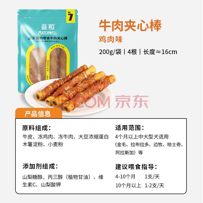 商品相册:益和(MATCHWELL)狗零食磨牙棒缠鸡牛肉干洁齿宠物中大型犬金毛 鸡肉夹心棒200g第