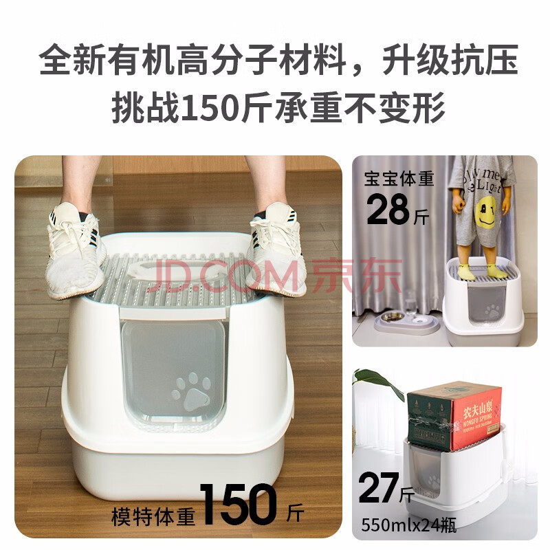 商品相册:乐优派猫砂盆全封闭防外溅猫厕所猫屎盆猫沙盆猫便盆 灰白小号第1张/共4