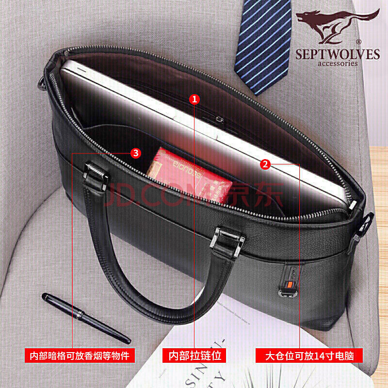 商品相册:七匹狼公文包商务男士头层牛皮手提包14英寸笔记本电脑包节日礼物文件包第