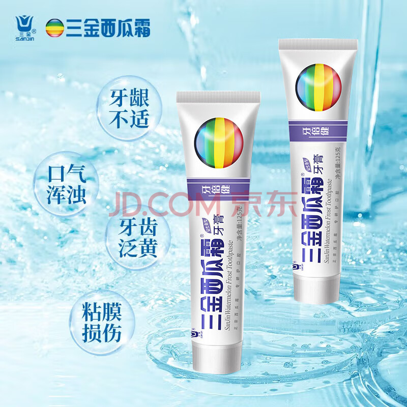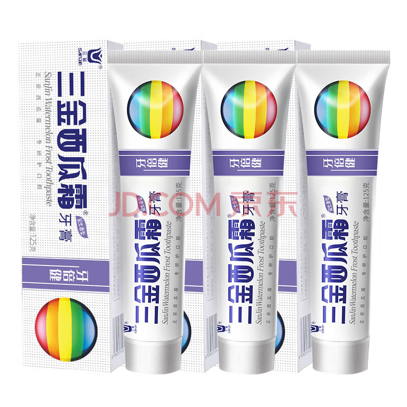 商品相册:三金西瓜霜牙膏深层清洁清新口气牙倍健留兰香型125g*3支装第