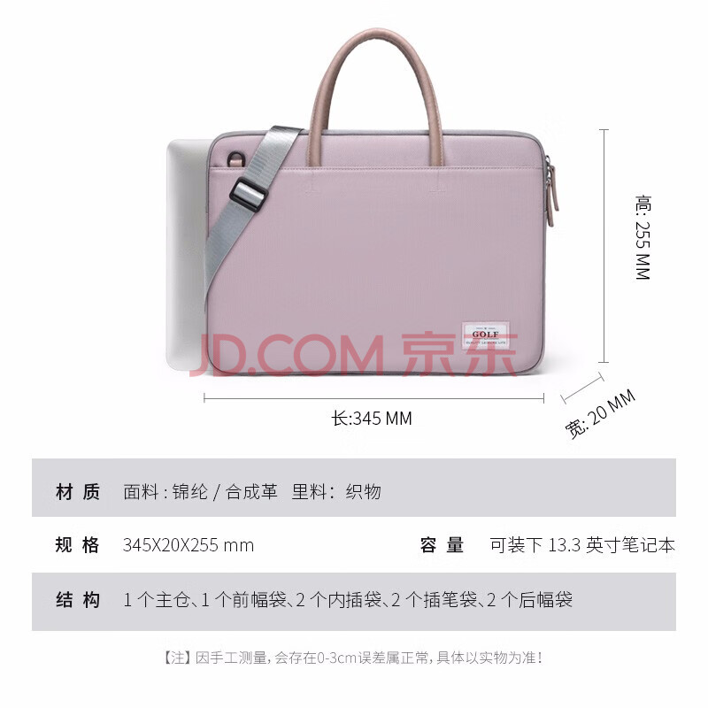 商品相册:高尔夫(GOLF)电脑包女13.3英寸手提苹果笔记本华为单肩斜挎包商务公文包女通勤第