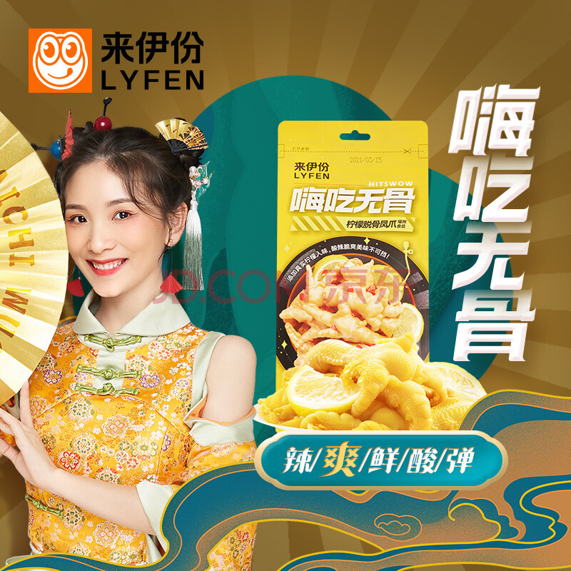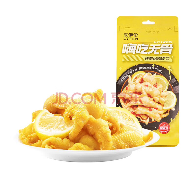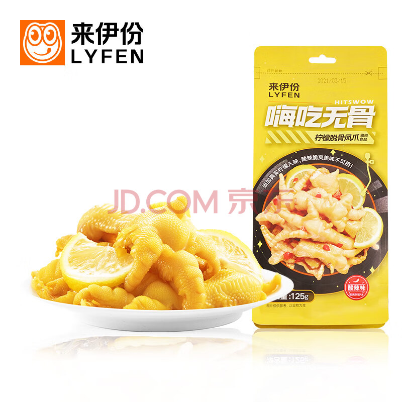 商品相册:来伊份嗨吃无骨凤爪酸辣柠檬味125g脱骨去骨鸡爪卤味熟食下酒菜休闲零食第