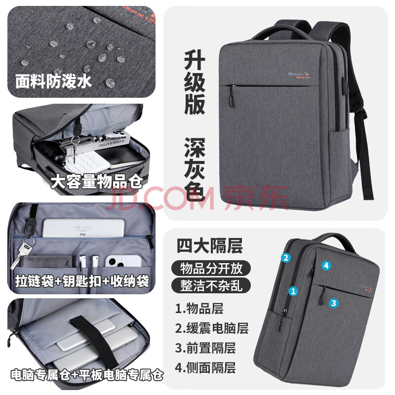 商品相册:BRINCH电脑双肩包14/16英寸大容量商务通勤适用小米华为笔记本电脑包 第