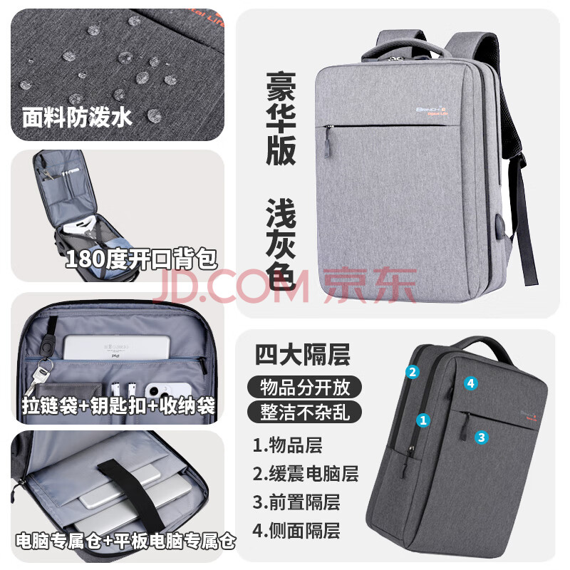 商品相册:BRINCH电脑背包14/16英寸商务旅行大容量防震适用苹果华为笔记本电脑第