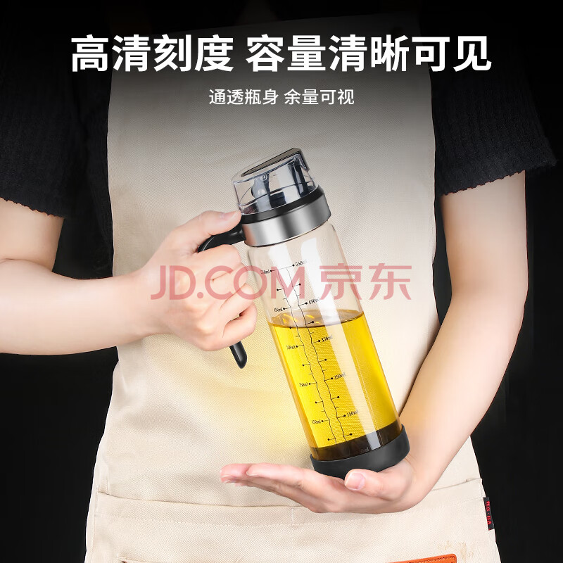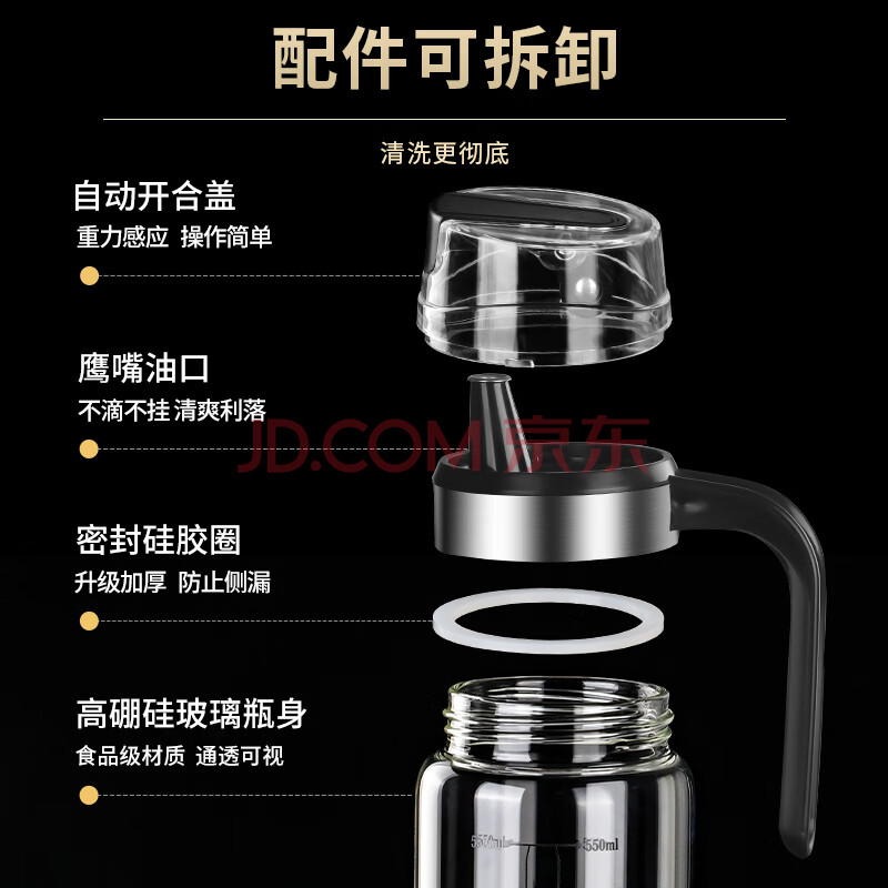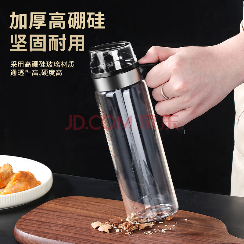商品相册:拜杰高硼硅玻璃油壶自动开合油瓶防漏油厨房专用香油酱油醋壶调料瓶第