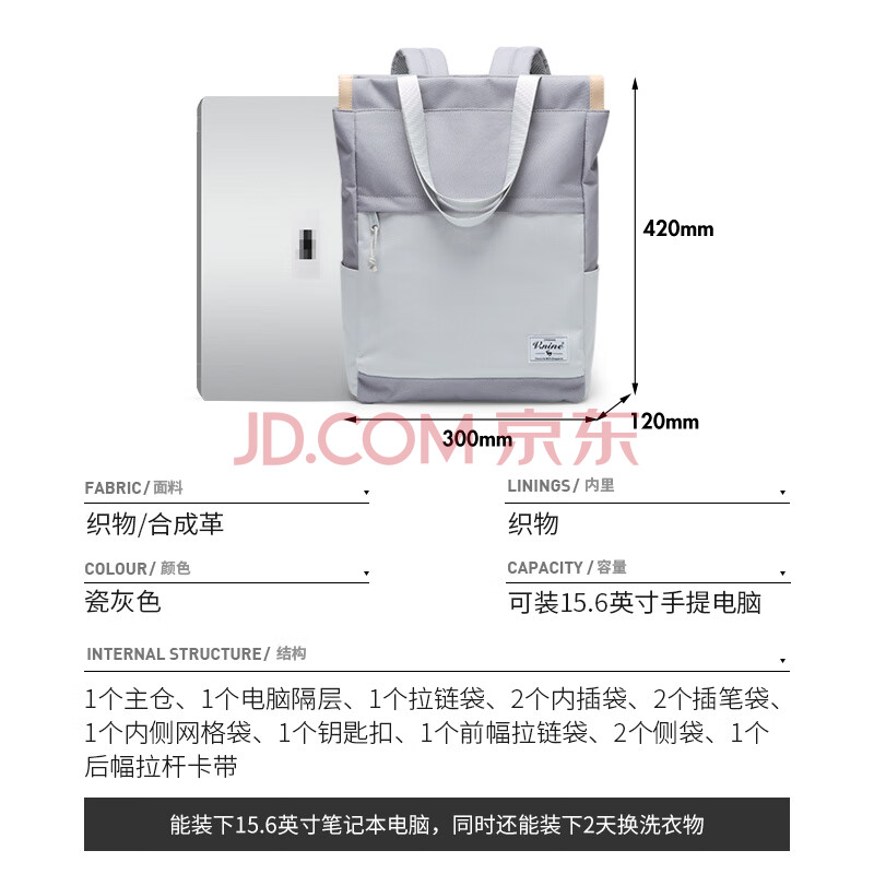 商品相册:第九城(V.NINE)电脑包男女士双肩包14/15.6英寸笔记本旅行背包单肩两用学生书包第