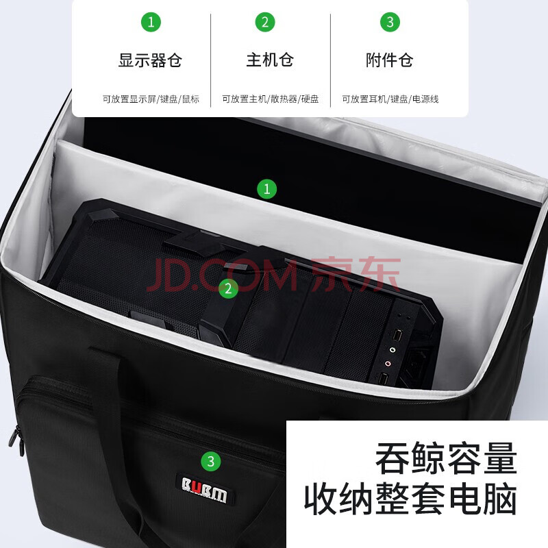商品相册:BUBM 台式电脑包主机包大容量电竞游戏机箱收纳包手提袋显示器键盘鼠标整套设备整理袋 DZS 升级版加大号黑色第