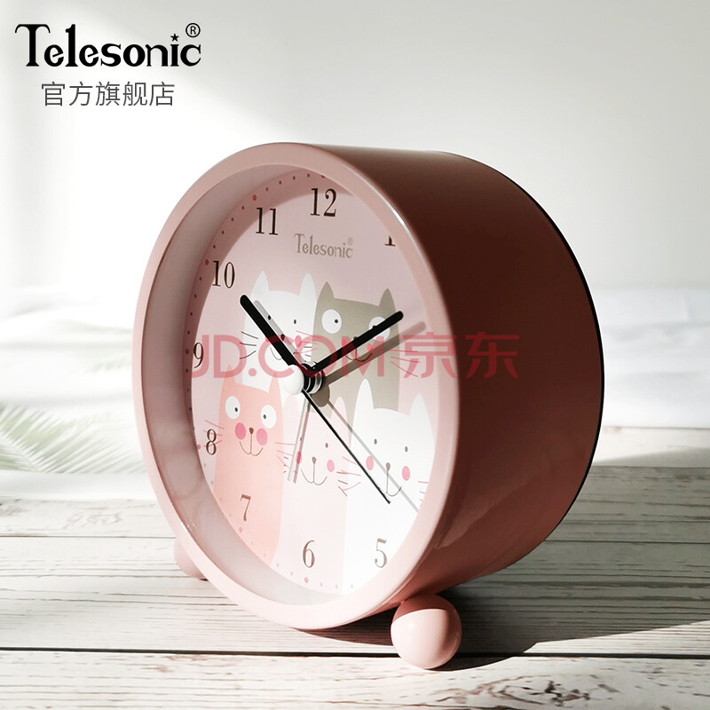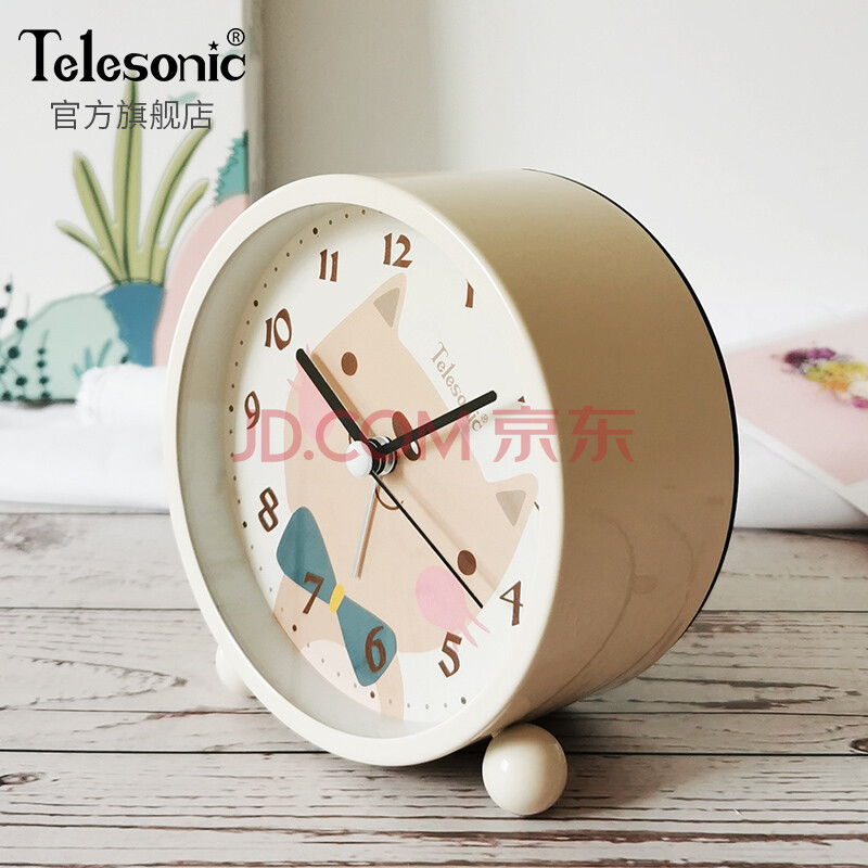 商品相册:天王星(Telesonic)闹钟 创意卡通简约小闹钟学生儿童卧室懒人静音床头钟 A1145-1白色开学季第