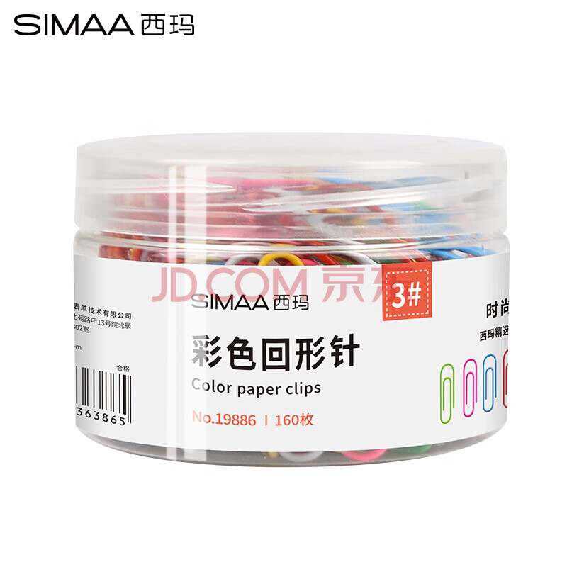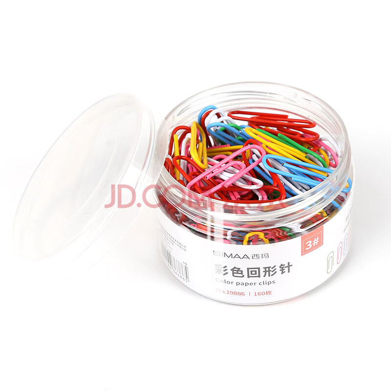 商品相册:西玛(SIMAA) 3#29mm彩色防锈回形针 办公用品家用多功能曲别针 办公用品 160枚/桶 19886第