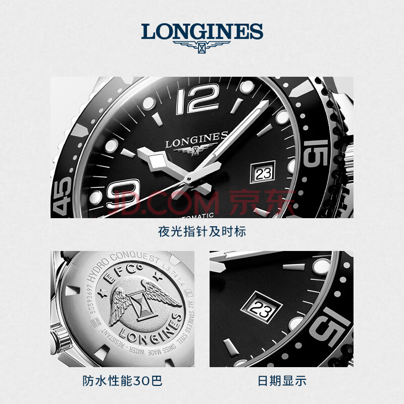商品相册:浪琴(LONGINES)瑞士手表 康卡斯潜水系列 男士钢带机械表L38414566第