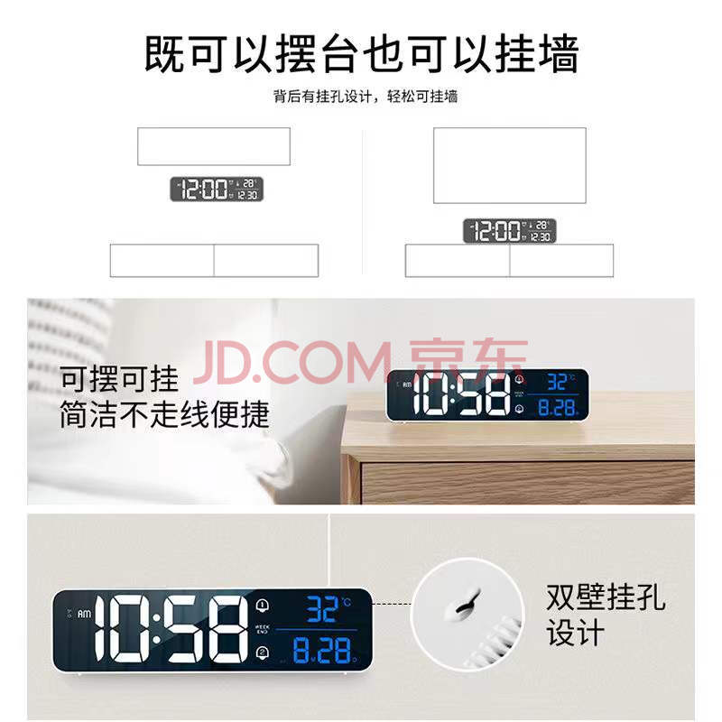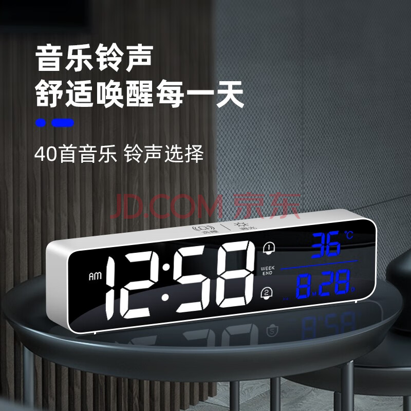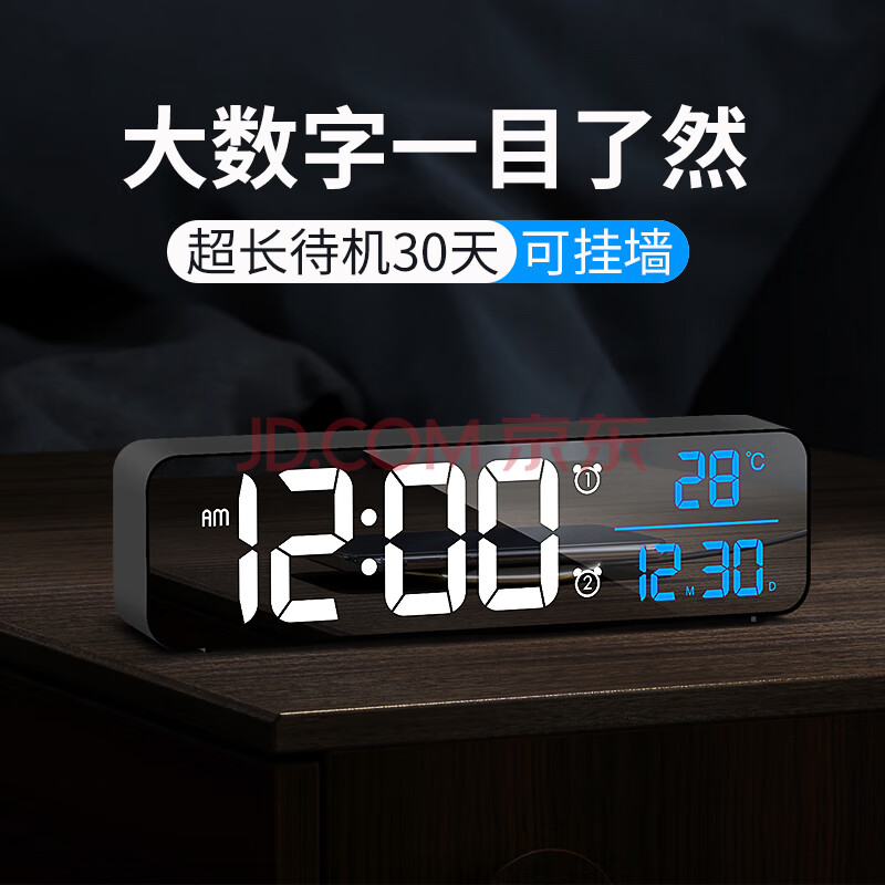 商品相册:BBA 闹钟智能电子夜光多功能客厅卧室可挂式大尺寸台钟 简约黑加长款开学季第