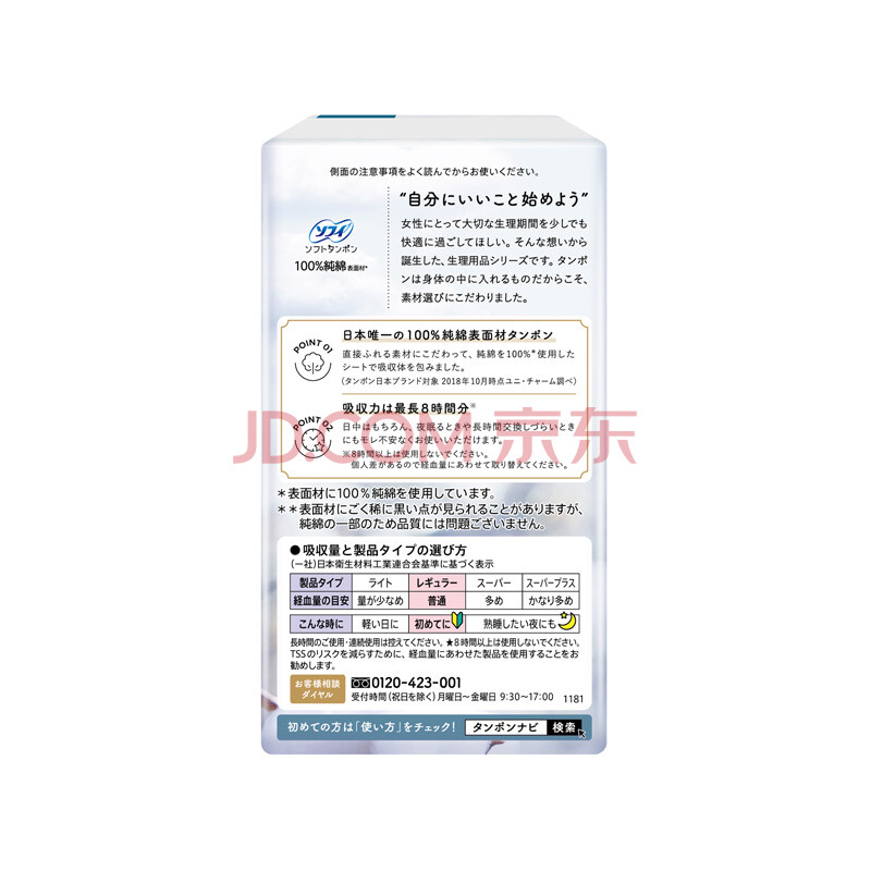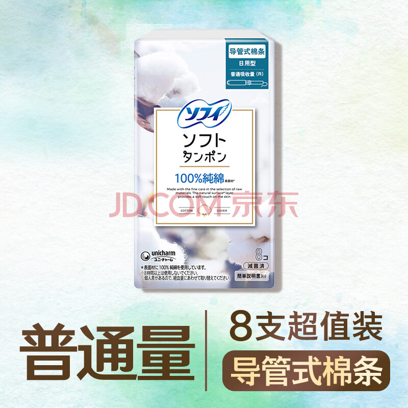 商品相册:苏菲导管式易推进口卫生棉条8支装 纯棉敏感肌内置卫生巾普通量型第