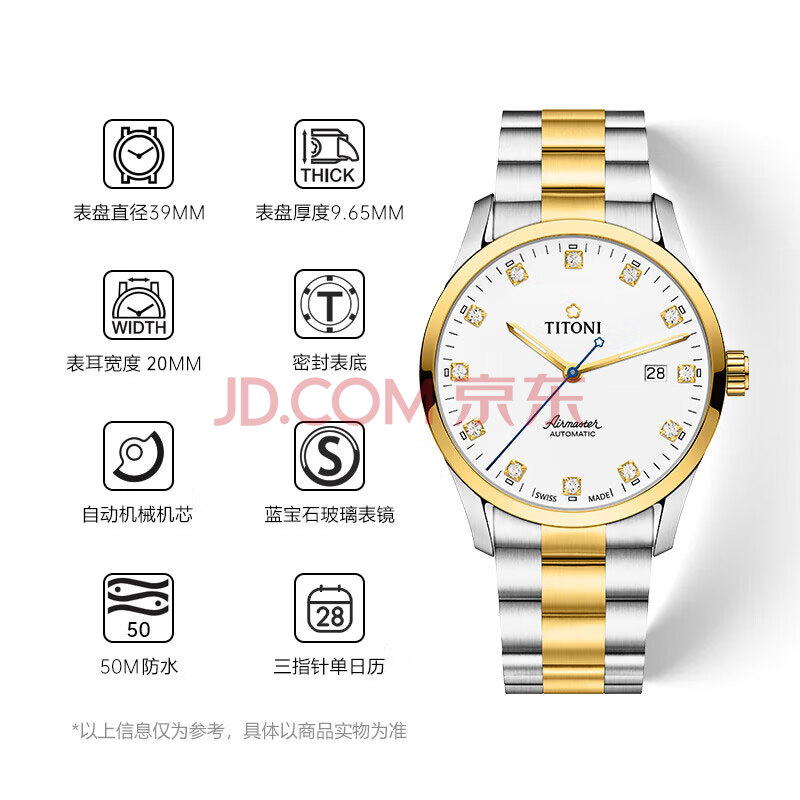 商品相册:梅花(Titoni)瑞士手表男士机械表空中霸王系列间金钢带83743-SY-582送男友礼物第