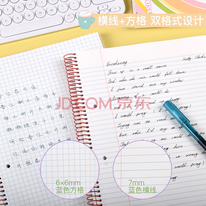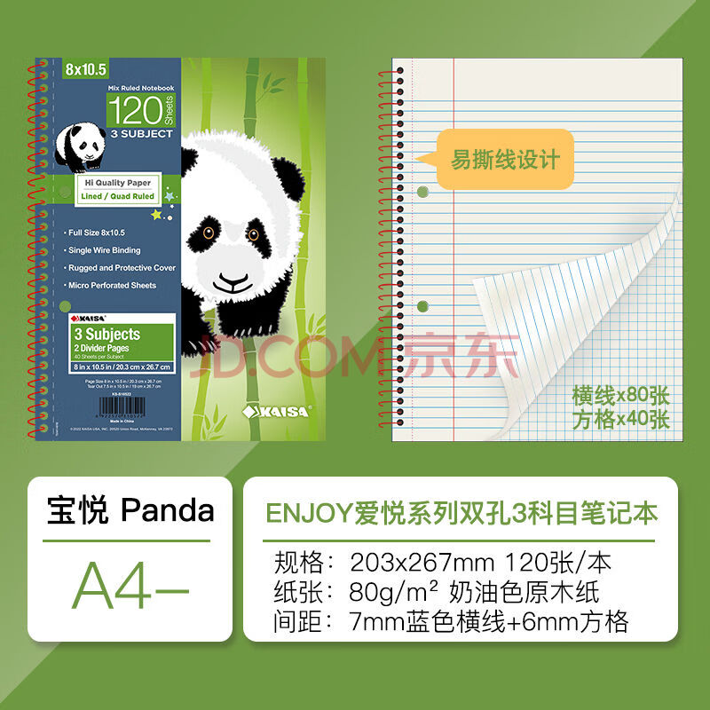 商品相册:凯萨(KAISA)【全网热卖】两孔笔记本 美式120张三科目线圈办公记事大学生考研本子熊猫爱悦系列日记本手账本第