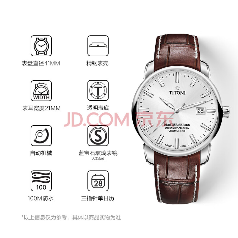 商品相册:梅花(Titoni)瑞士手表 大师系列自动机械皮带男士腕表 天文台83188-S-ST-575第