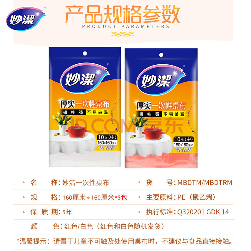 商品相册:妙洁 桌布中号3包组合一次性餐桌塑料膜餐垫野餐布第