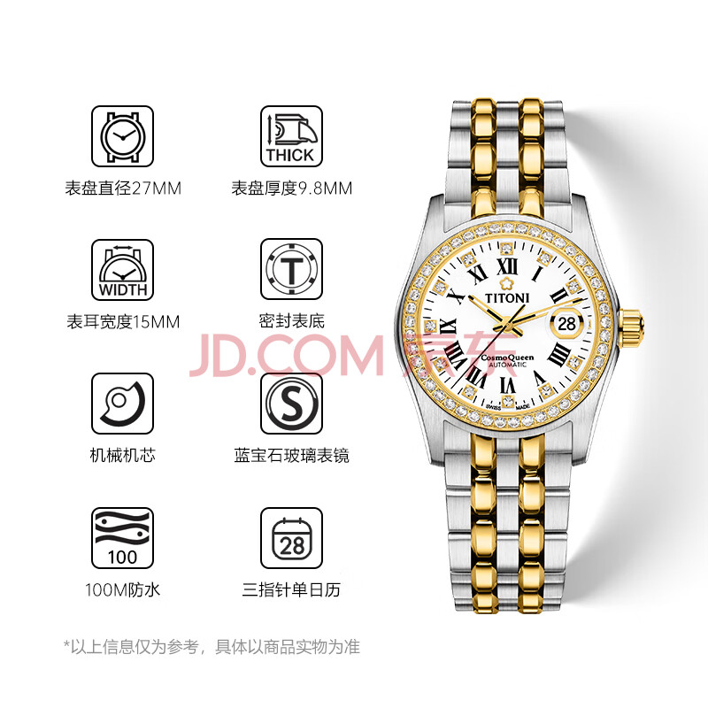 商品相册:梅花(Titoni)瑞士进口手表 宇宙系列 自动机械间金钢带女表 729-SY-DB-019礼物第