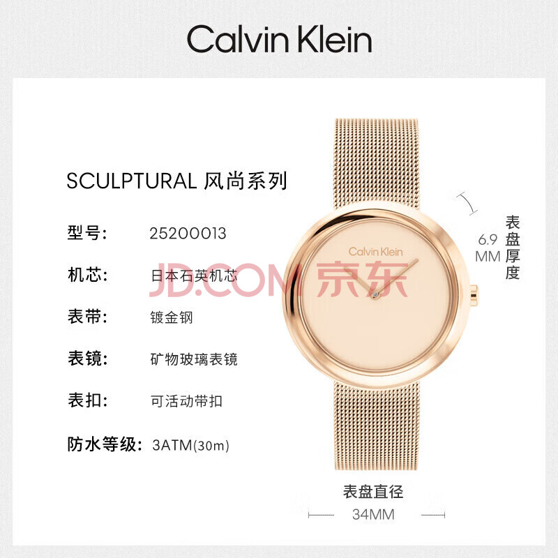商品相册:Calvin KleinCK女表时尚轻奢小金表25200013送女友节日礼物第