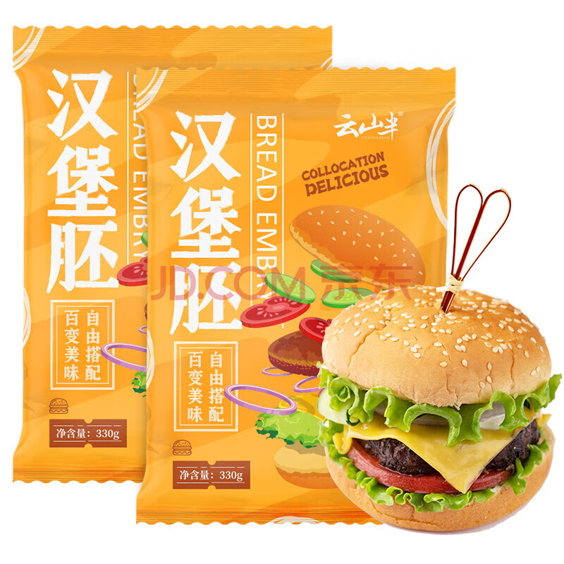 商品相册:云山半汉堡胚330g*2袋 12组 面包胚 早餐三明治第
