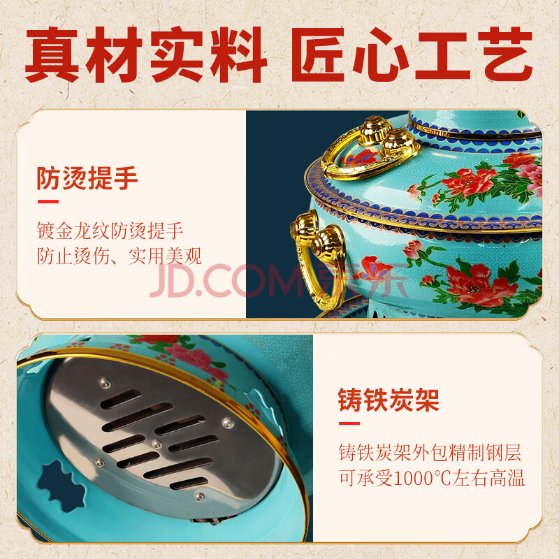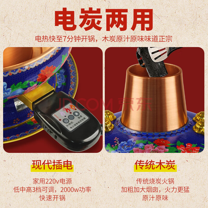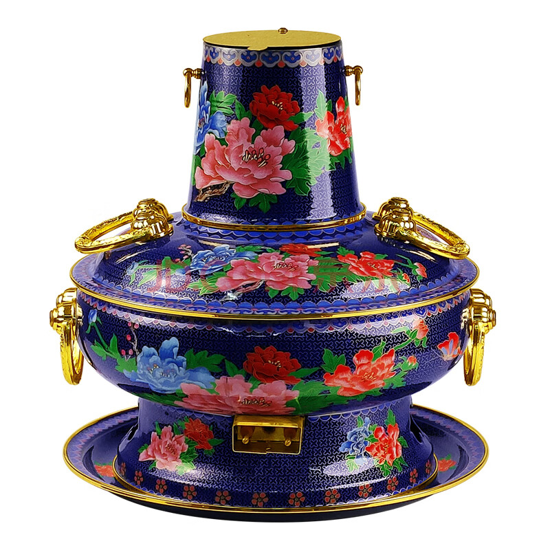 商品相册:郭一元新景泰蓝铜火锅电炭两用可水洗加厚搪瓷铜锅老北京涮肉锅34蓝单味第