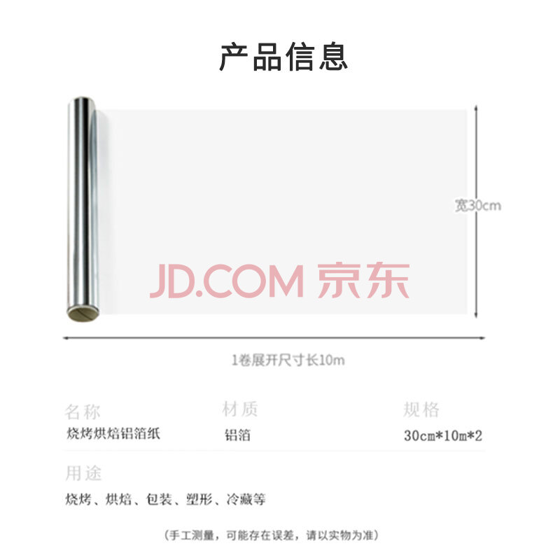 商品相册:京惠思创锡箔纸锡纸卷【30厘米*10米 2卷】锡纸空气炸锅烤箱烧烤露营野餐第