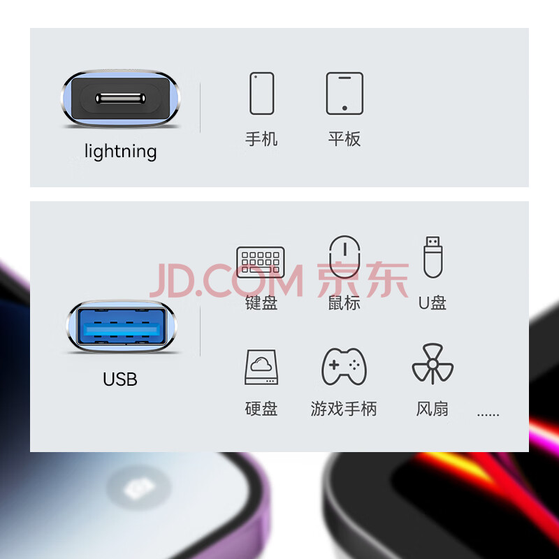商品相册:CangHua 苹果otg转接头支持U盘Lightning转USB转换器接口iPad平板iPhone手机lighting外接U盘鼠标键盘第
