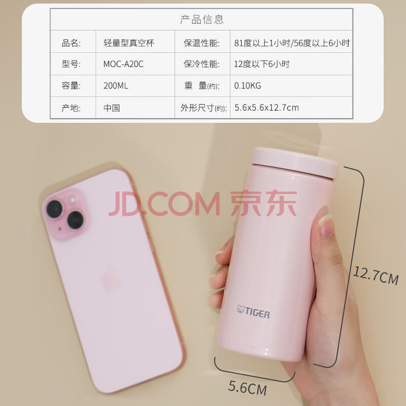 商品相册:虎牌(TIGER)保温保冷杯轻量型不锈钢时尚水杯MOC-A20C-PP粉色200ml第