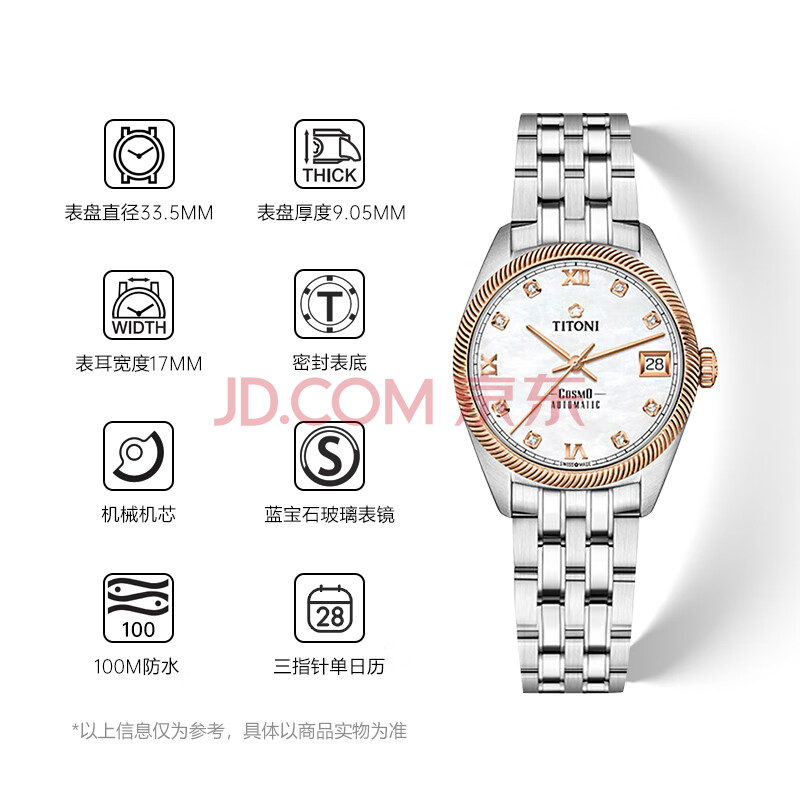 商品相册:梅花(Titoni)瑞士手表 宇宙系列 自动机械钢带女士腕表828-SRG-652送女友礼物第