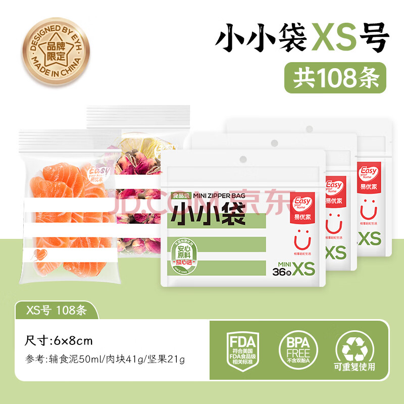 商品相册:易优家 食品密封袋分装袋宝宝辅食袋保鲜袋分装XS号108条 第