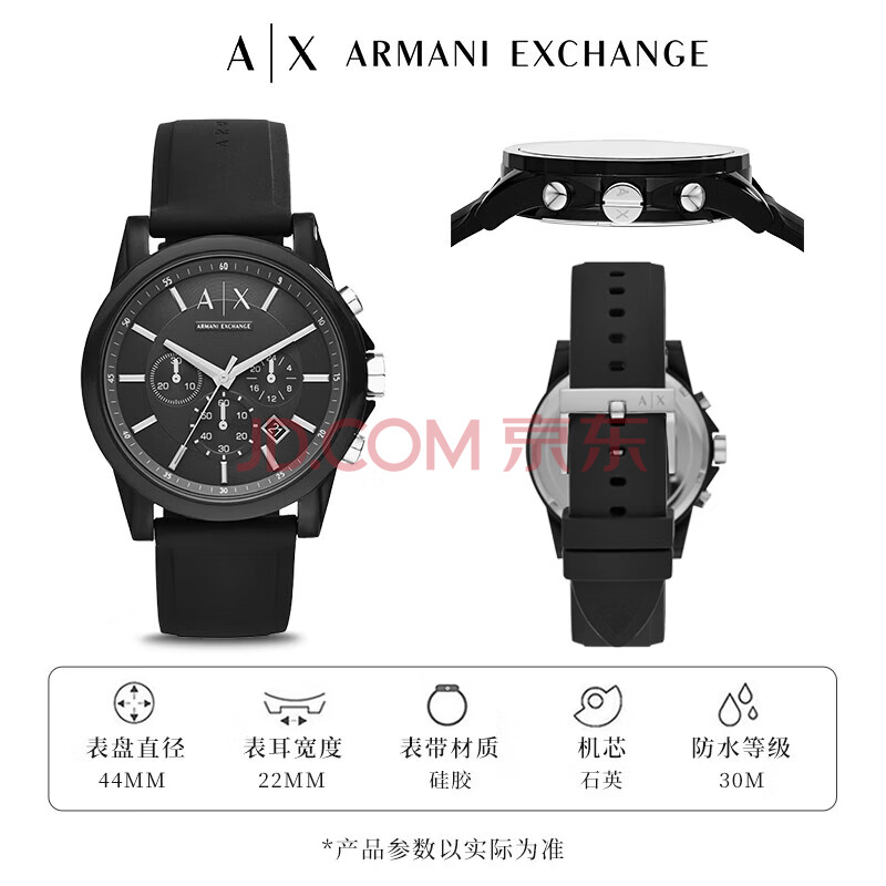商品相册:ARMANI EXCHANGE手表男士经典三眼表盘石英欧美腕表礼物送男生AX1326第