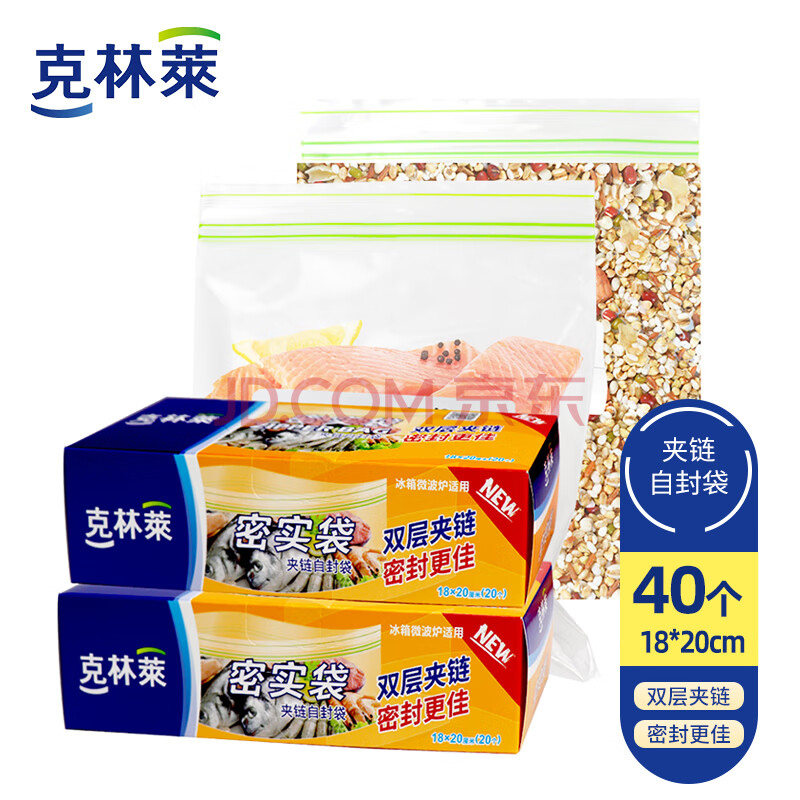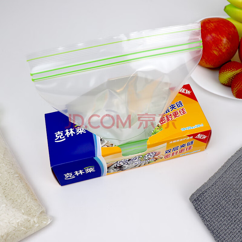 商品相册:克林莱双拉链密实袋自封袋盒装食品保鲜幼儿园野炊露营收纳18*20cm小号第