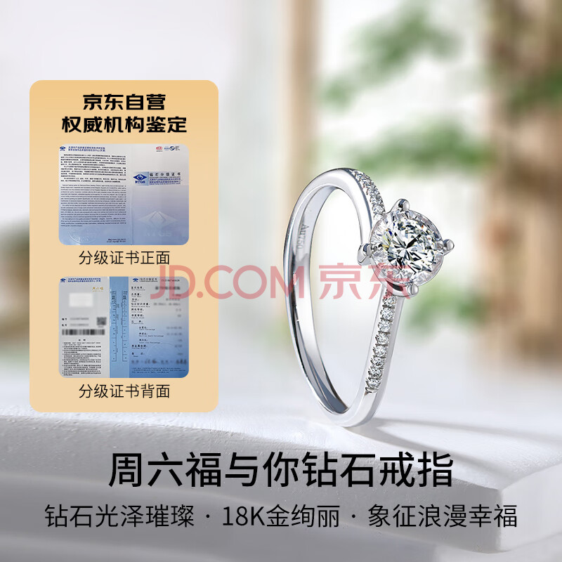 商品相册:周六福求婚钻戒18K金钻石戒指W0210431生日礼物 20分I-J/SI主钻 12号第