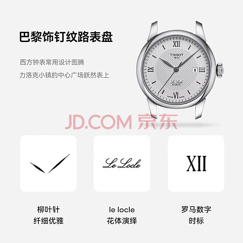 商品相册:天梭(TISSOT)手表 力洛克系列女表 瑞士自动机械女士钢带腕表商务表生日礼物第