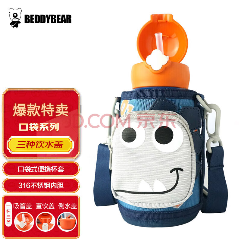 商品相册:杯具熊(BEDDYBEAR)四叶草儿童保温杯四盖三用吸管水杯316不锈钢学生杯子630ML恐龙第