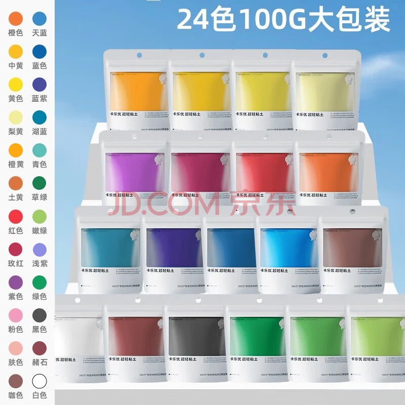 商品相册:卡乐优(Coloyou)超轻粘土彩泥安全无毒diy手工开学黏土24色100克大包儿童橡皮泥第