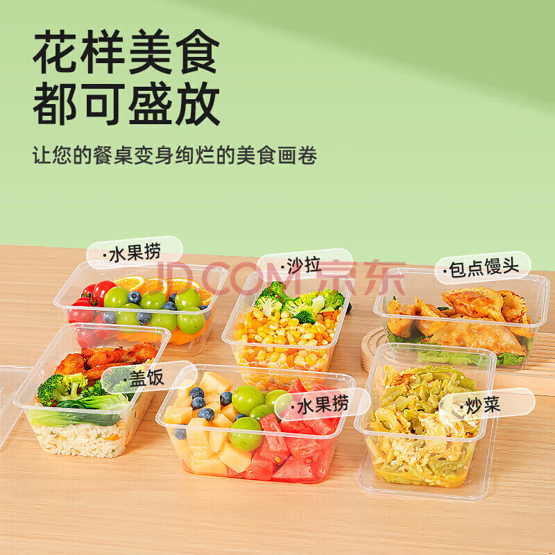 商品相册:特美居(temeiju)一次性饭盒方形1000型*20套食品级打包盒加厚快餐盒带盖野餐餐具第1张/共9
