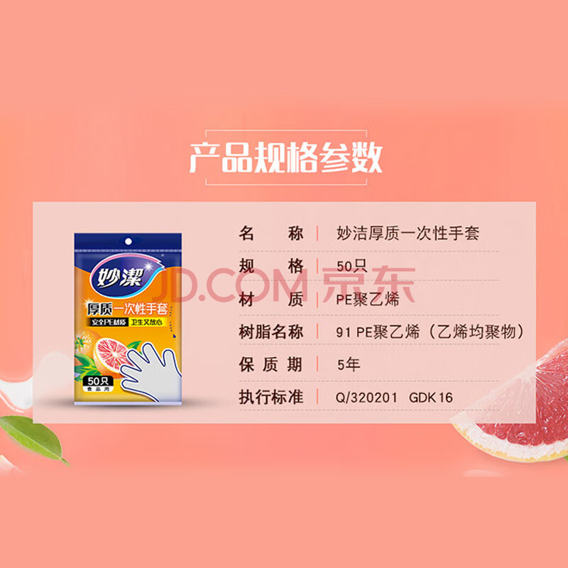 商品相册:妙洁 一次性手套食品级PE加厚塑料厨房用餐桌野炊50只装第